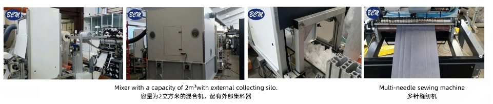 Quilted fabric waste cutting machine is with feeding width 360MM. Equipped with external collecting silo and mixing machine.